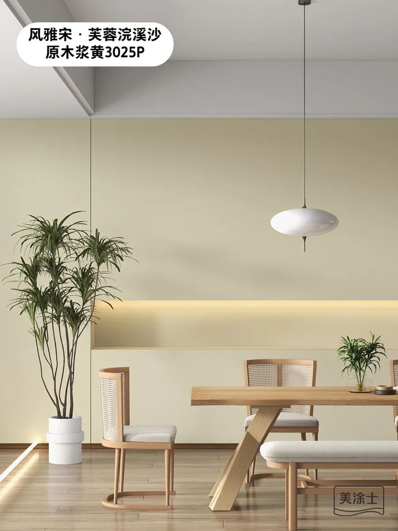 彩乐园国潮色原木浆黄3025P,搭配木质家具和素色装潢,在大量铺设的浅色元素中,人的视野也似乎被扩大,空间与自然融为一体。在极简的家居布置中,即便没有艳丽的色彩点缀,原木浆黄也能打造出和谐舒适的氛围而不乏味。