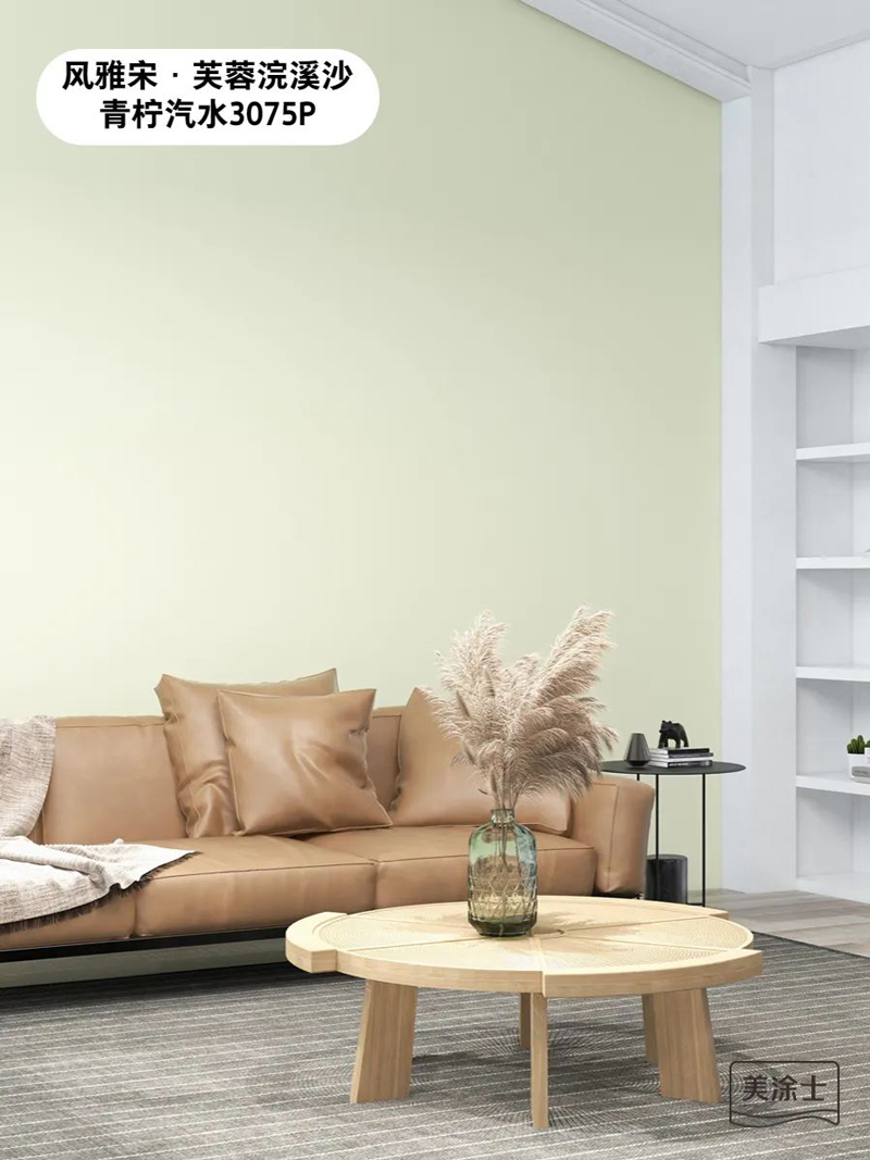 彩乐园国潮色青柠汽水3075P,这种淡淡的绿黄调铺满整个客厅背面,不仅点亮了整个空间,且不会凸显陈旧感。与素色装潢自然搭配,在空间中散发着明媚和活力的气息,装上大面积落地窗户,还能与外面观景巧妙融合。