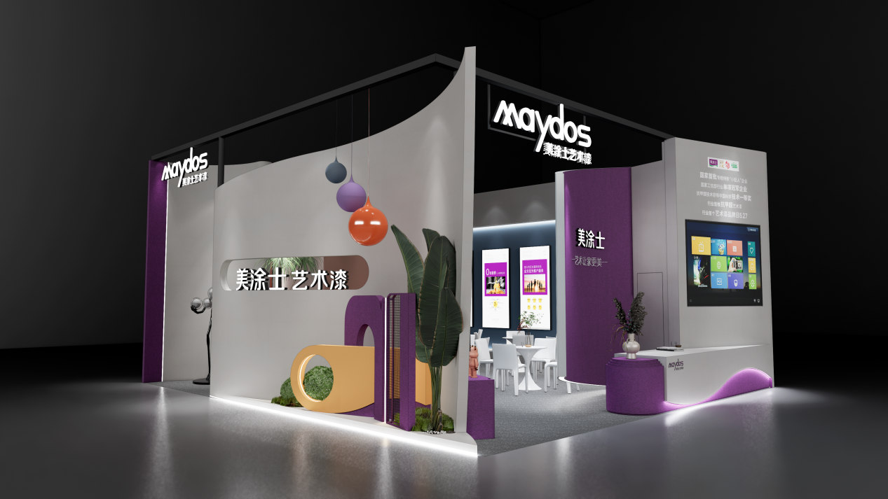 本次展会沿用“方寸之间,让家更美”的展馆设计,融合了品牌的标准色——彩乐园紫,并以温柔而优雅的丁香灰为主色,时尚简约而不失活力!再以日晷黄、玛奇朵焦糖色、夏日之歌蓝等为点缀色,采用现代化的展示手法,使用灯光、投影等技术来突出展示的亮点,创造出一个富有东方韵味的艺术空间,给现场观众带来一场视觉盛宴。此外,展馆还会运用产品样板、微水泥梯步景观等元素进行装饰,提高整体的协调性,也更深刻地诠释了彩乐园“让世界更环保、更美丽”的企业愿景。