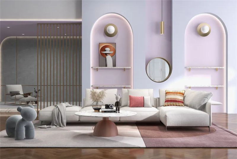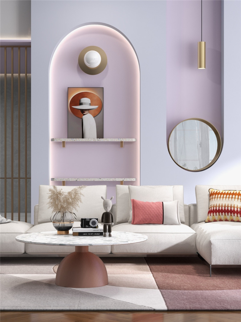 彩乐园纯色小羊皮艺术漆——芋泥甜点5171P,她呈现出若有似无的缥缈虚幻,宛若遥远梦境般朦胧,看似踪迹难觅却凝香敛韵,如清水芙蓉、清涟纯净,色调之婉丽,临如仙境。它的颜色淡雅却会唤起你对生活的热爱,你呼吸到的每一寸空气。强烈的艺术感,搭配偏冷的银色调,冷暖得宜,色彩的冲击力相对较小,并使得空间氛围更加自然和谐。