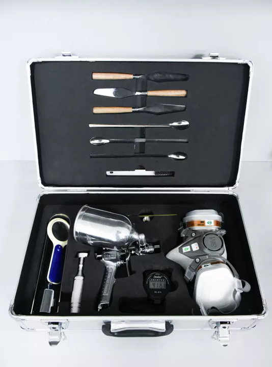工欲善其事,必先利其器。彩乐园家具漆首先对服务团队的重要装备——工具箱进行了升级。升级后的工具箱相对之前更为轻便,外观结构更为结实。内部的每一件工具,经过再三考量和反复试验,在原来的基础上实行了华丽升级,成为了每位技术服务人员的重要利器,这次装备的升级大大提高了技术服务人员的工作效率和专业程度。