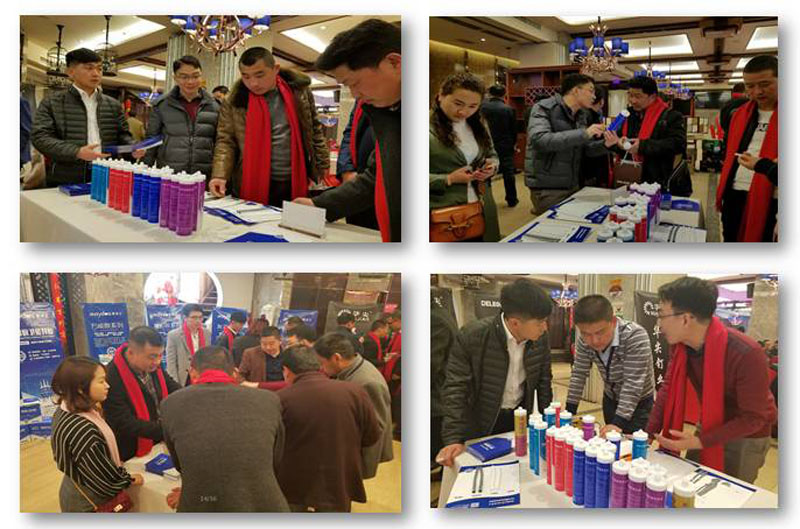 好雨知时节,当春乃发生。好胶亦如此!3月16日,彩乐园建材股份有限公司与美宁建材公司相约兰州“再出发 勇夺新辉煌”——彩乐园胶粘剂事业部总经理邓建华先生,彩乐园市场二部部长连静初女士,彩乐园胶粘剂事业部销售部长陈健强先生,彩乐园工程师曾武先生、谢仲洪先生,兰州美宁建材公司董事长齐步成先生,美宁建材公司营销总监陈占军先生以及甘肃全省逾200家经销商代表义结金“兰”,可谓“胶”龙出海乘云起!