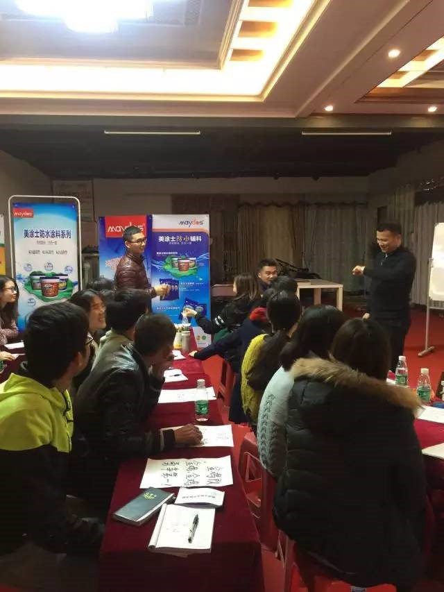 打造狼性团队,开启彩乐园2017高速发展引擎,为彩乐园实现战略目标提供强劲动力——2017年2月8日,江门彩乐园团队举办了销售综合培训会,以“相信专业的团队力量”为主题,进行了一场囊括彩乐园家装体系产品、艺术涂料、基辅材产品、销售模式、产品体验与实操的综合培训。