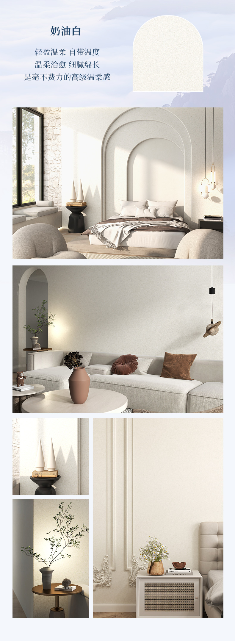 隐约纹理一起一伏,犹如山峦重叠,云气缭绕,远山在云雾中若隐若现,恍如仙境,诗意无穷。